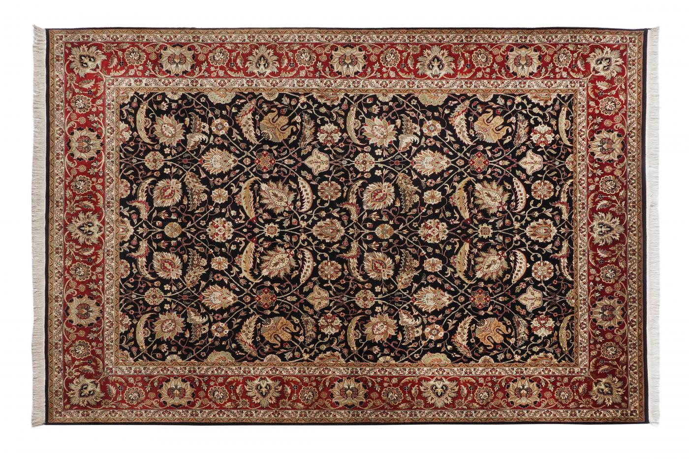Traditional Black Red Hand Knotted Carpets 9 x 12
