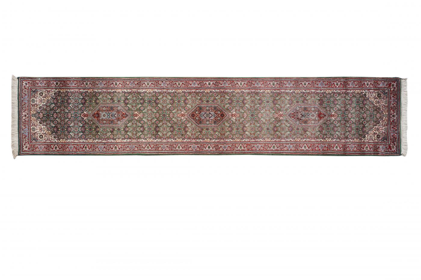 Traditional Green Red Hand Knotted Carpets 2.6 x 12