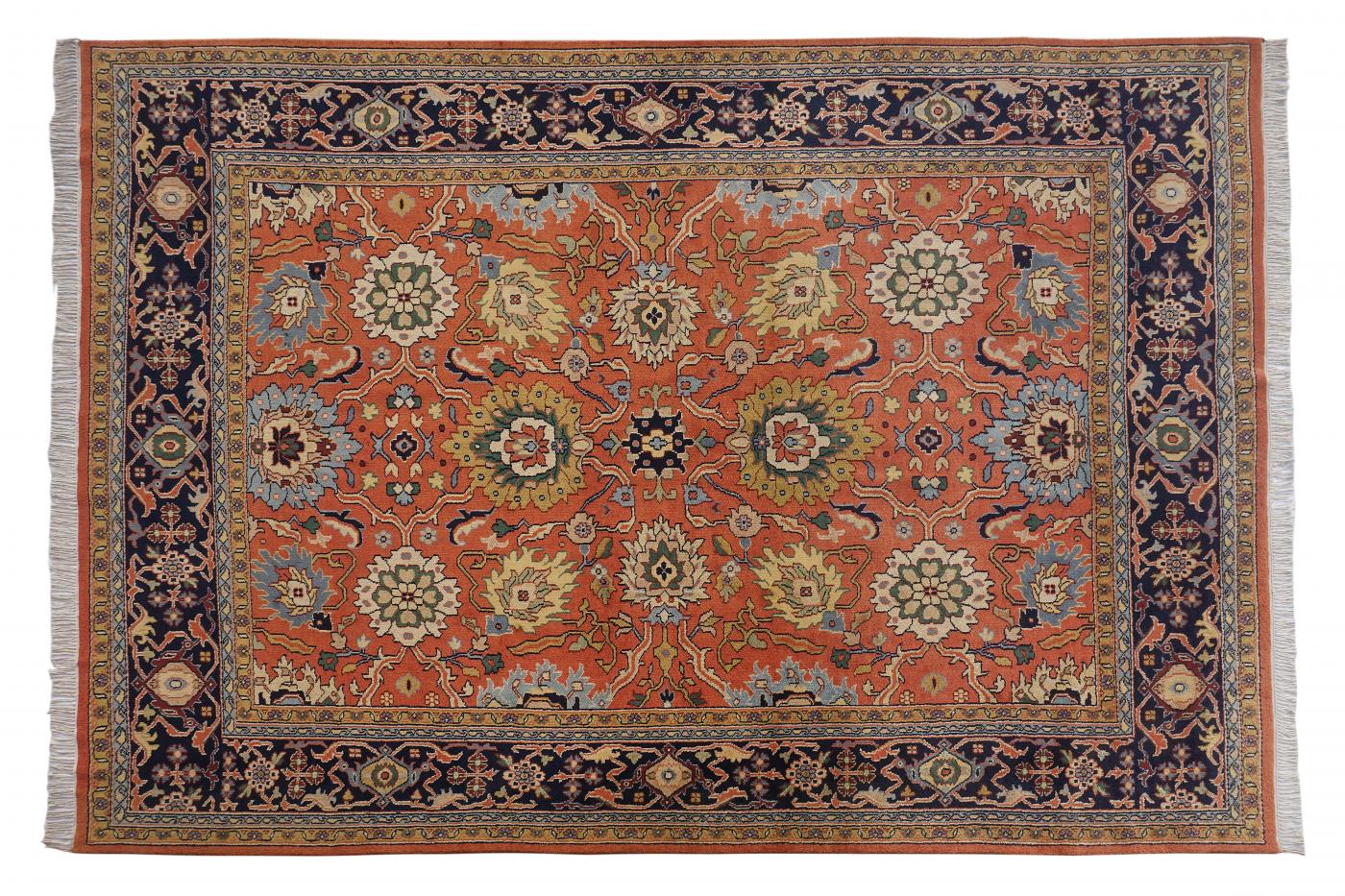 Traditional Rust Blue Hand Knotted Carpets 9 x 12