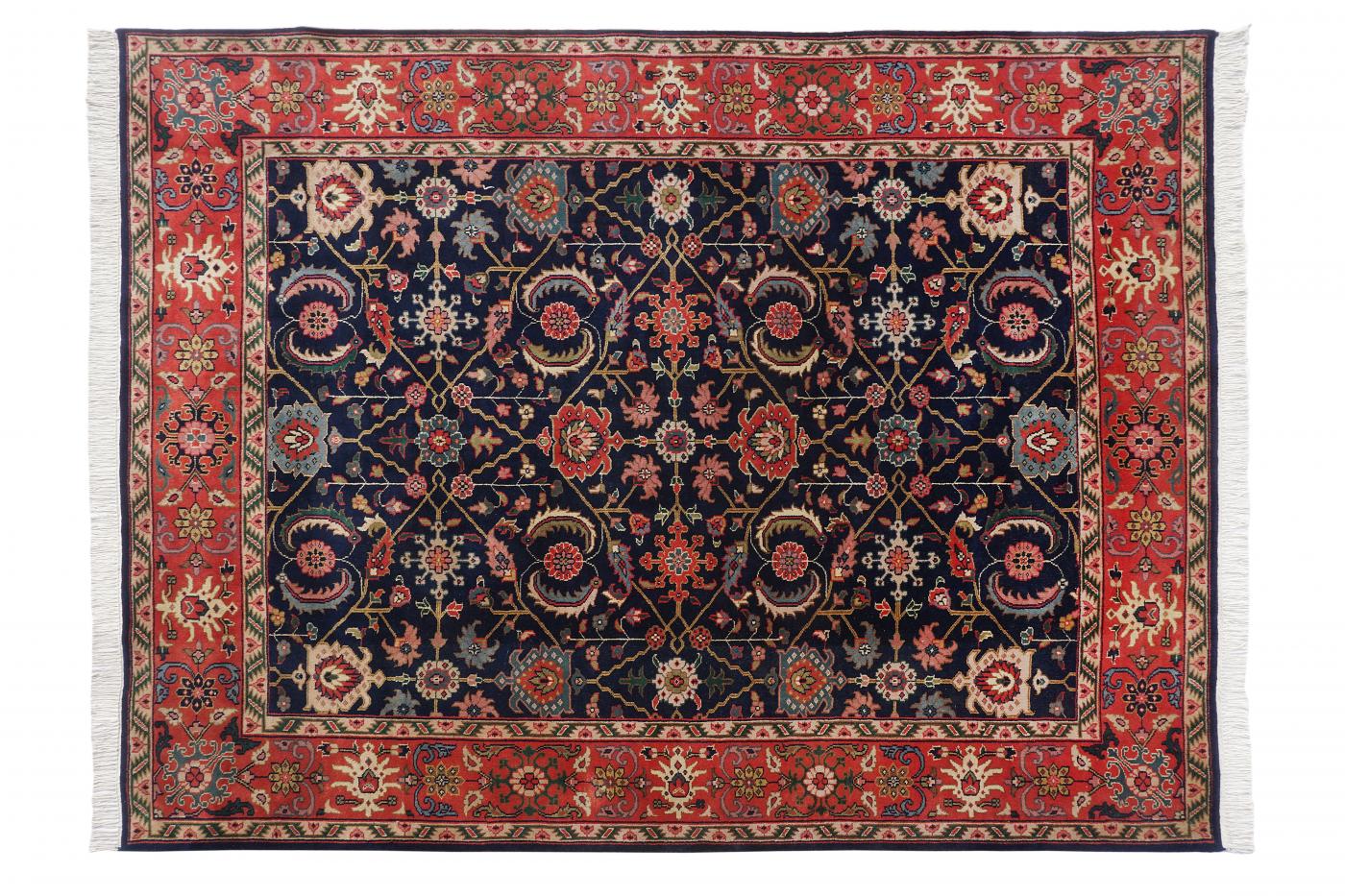 Traditional Blue Red Hand Knotted Carpets 8 x 10