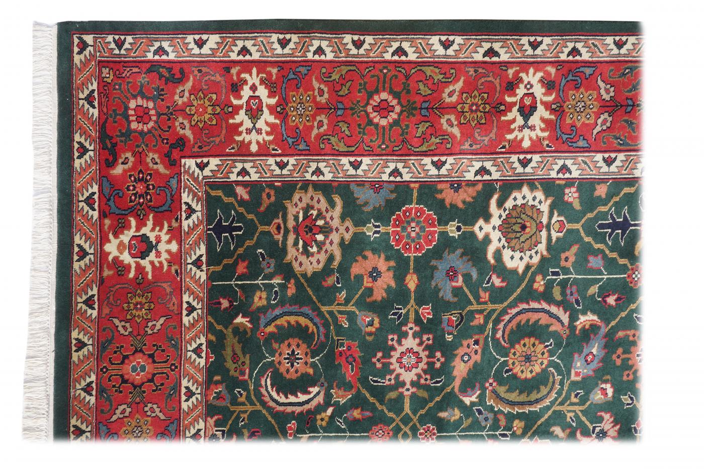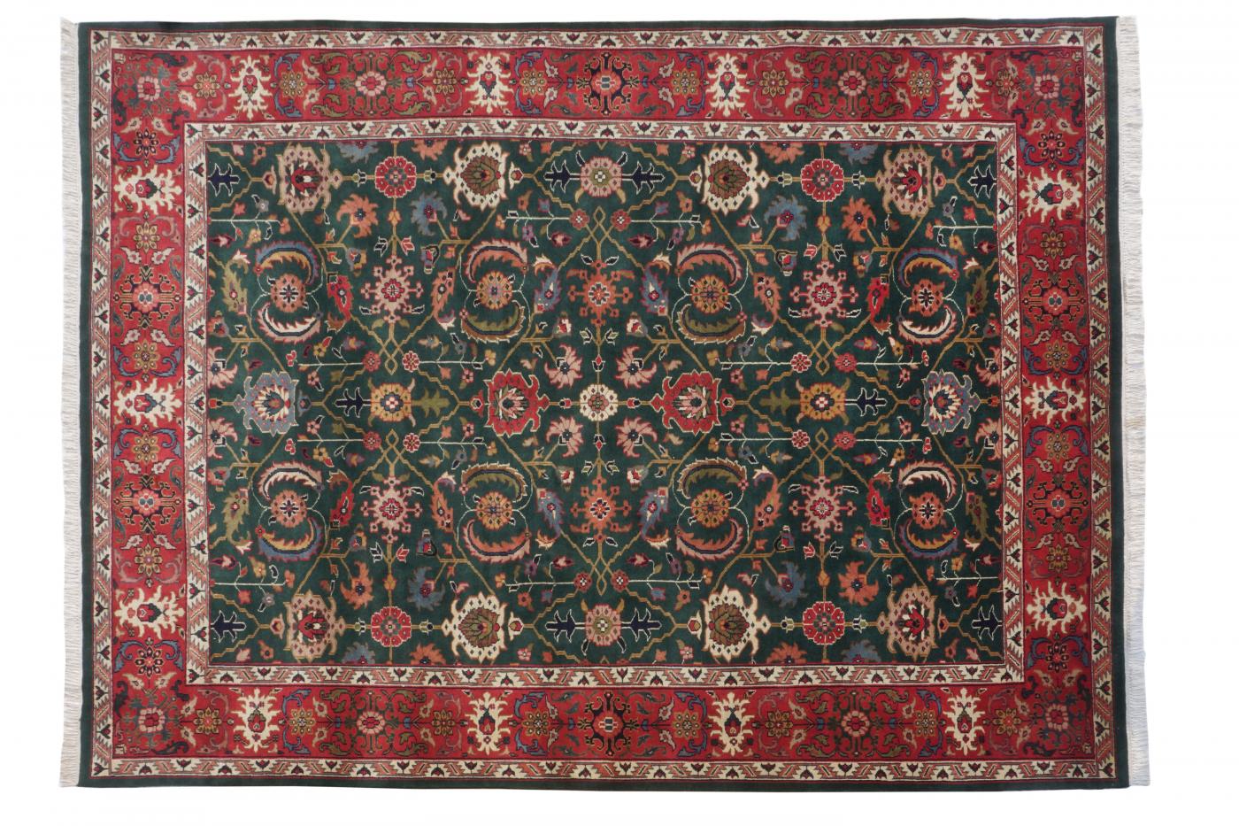 Traditional Green Red Hand Knotted Carpets 9 x 12