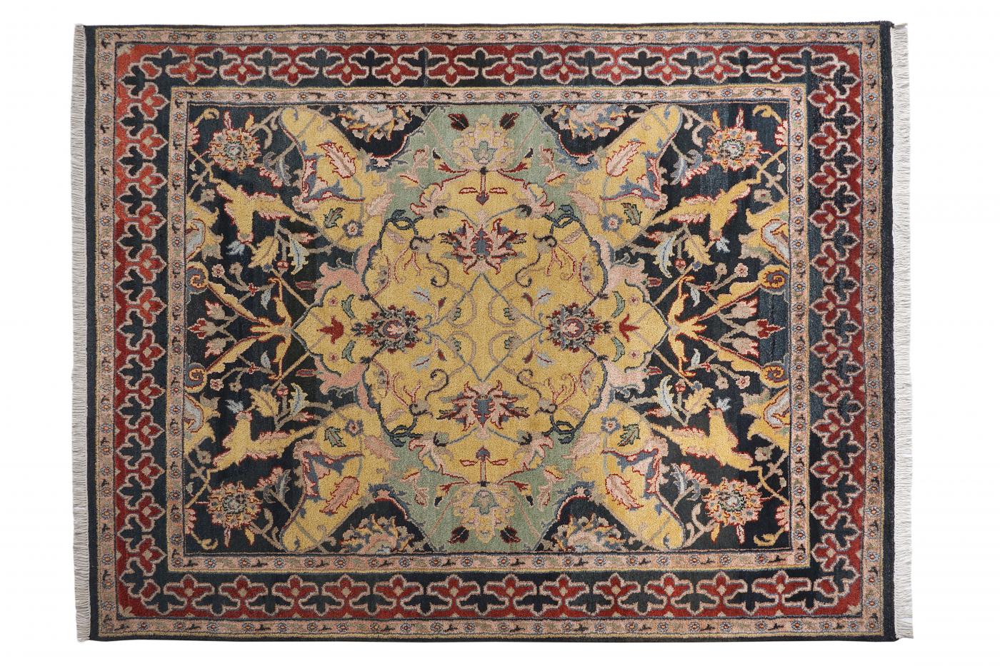 Traditional Gold Black Hand Knotted Carpets 8 x 10