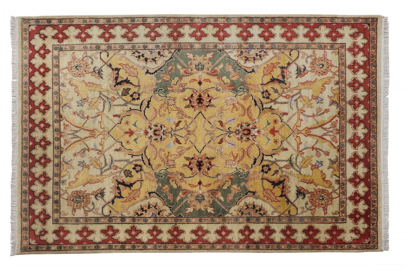 Traditional Gold Ivory Hand Knotted Carpets 6 x 9
