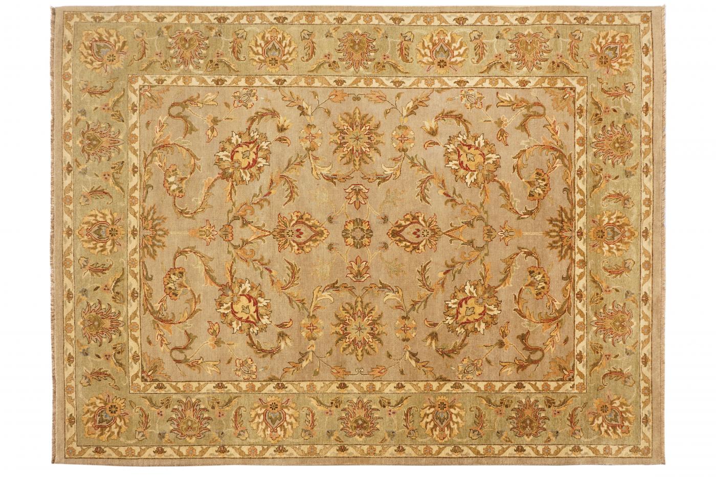 Traditional Camel Green Hand Knotted Carpets 8 x 10