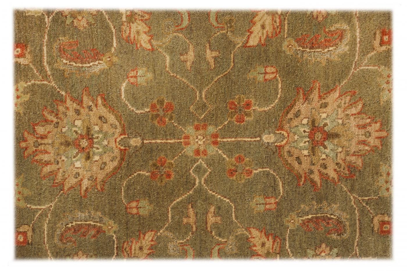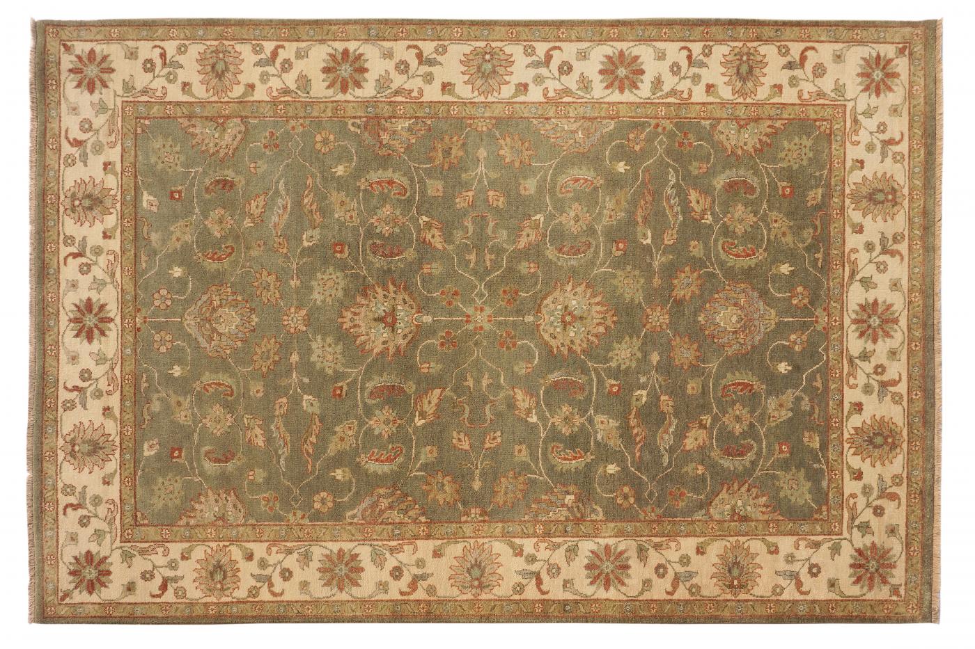 Traditional Light Green Beige Hand Knotted Carpets 6 x 9