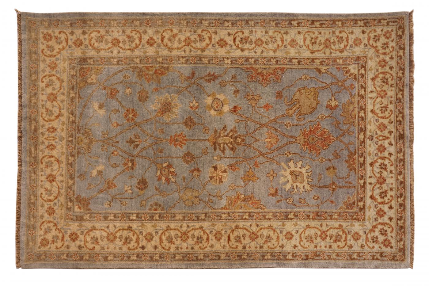 Traditional Light Blue Beige Hand Knotted Carpets 4 x 6