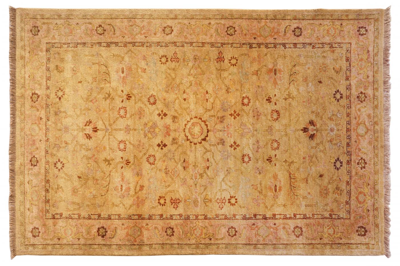 Traditional Light Gold Pink Hand Knotted Carpets 5 x 8
