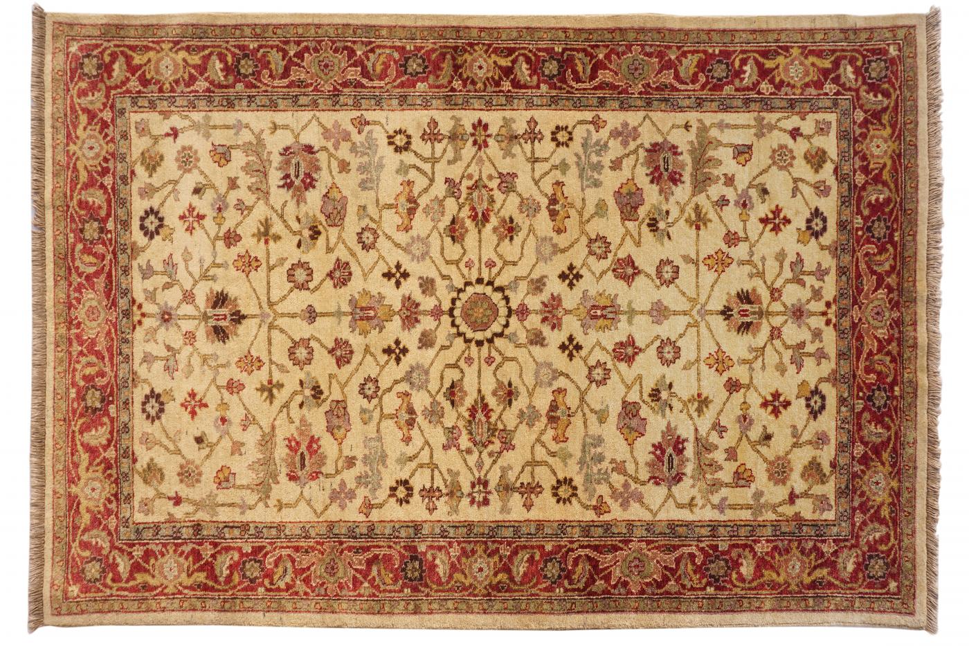 Traditional Light Gold Red Hand Knotted Carpets 5 x 8