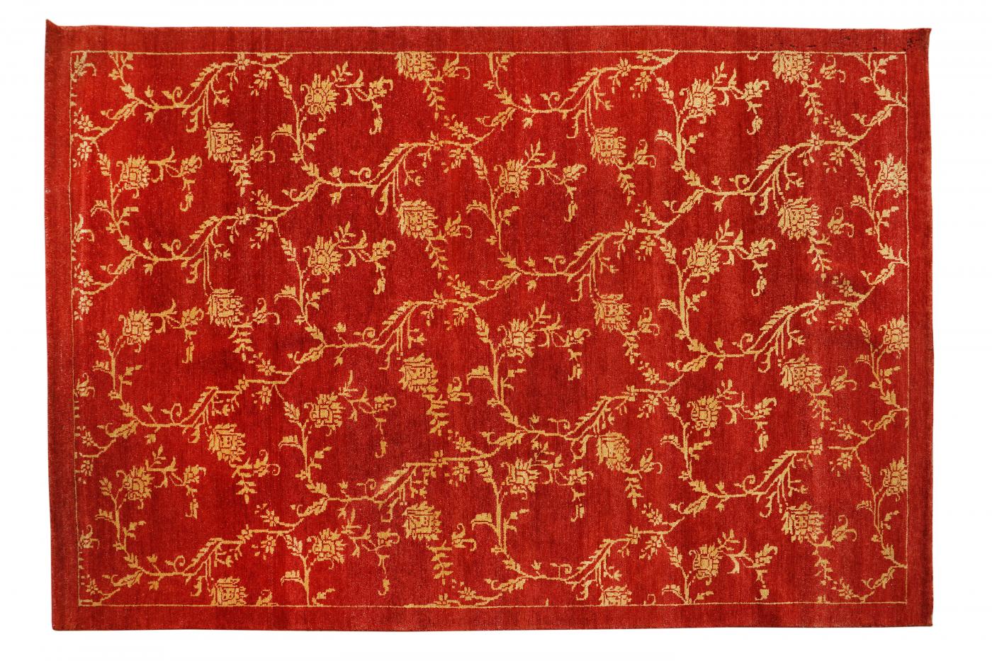 Modern Red Gold Hand Knotted Carpets 5.7 x 7.10