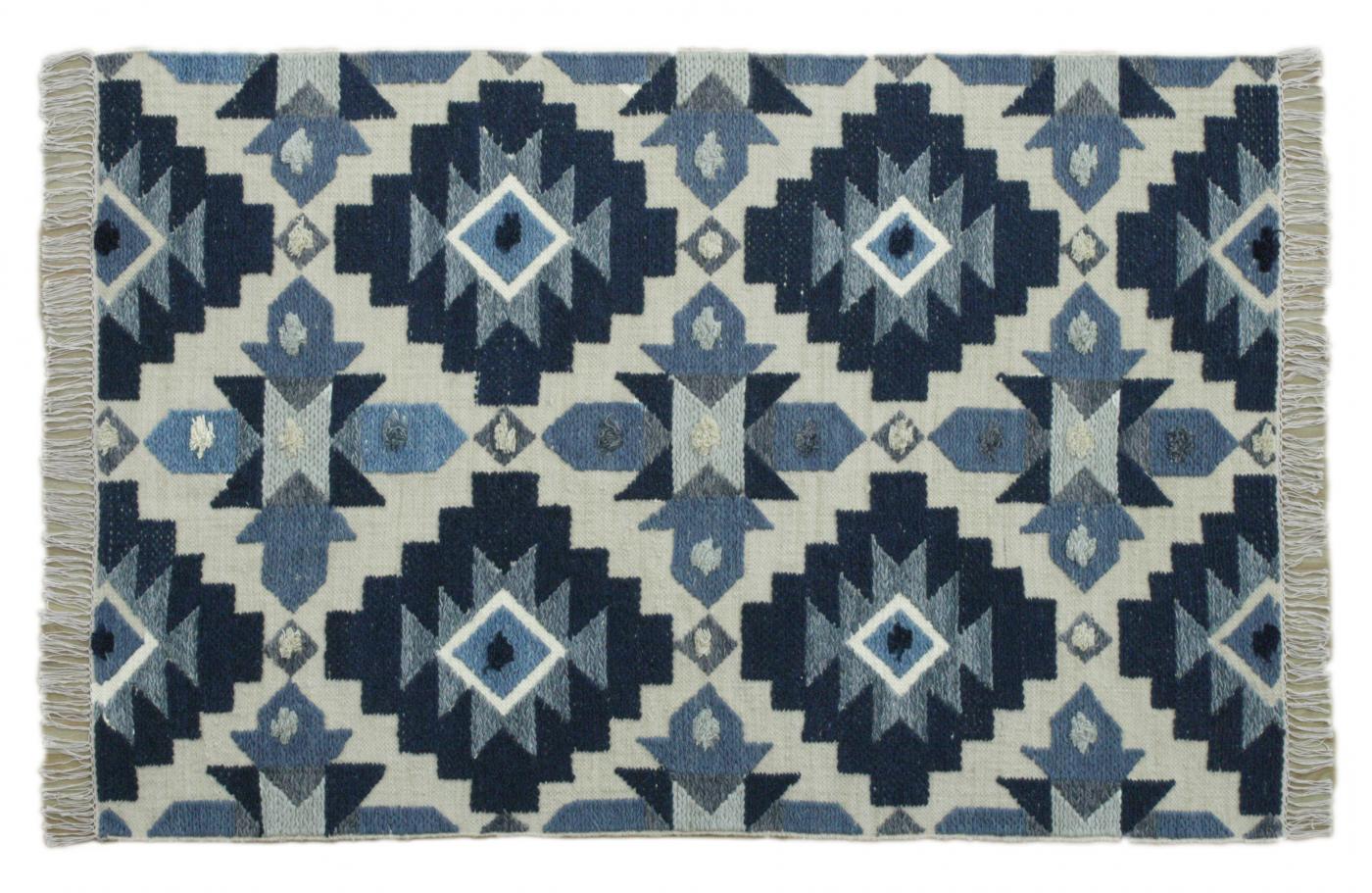 Contemporary Blue Multicolour Flat Weave Rugs 5 x 8