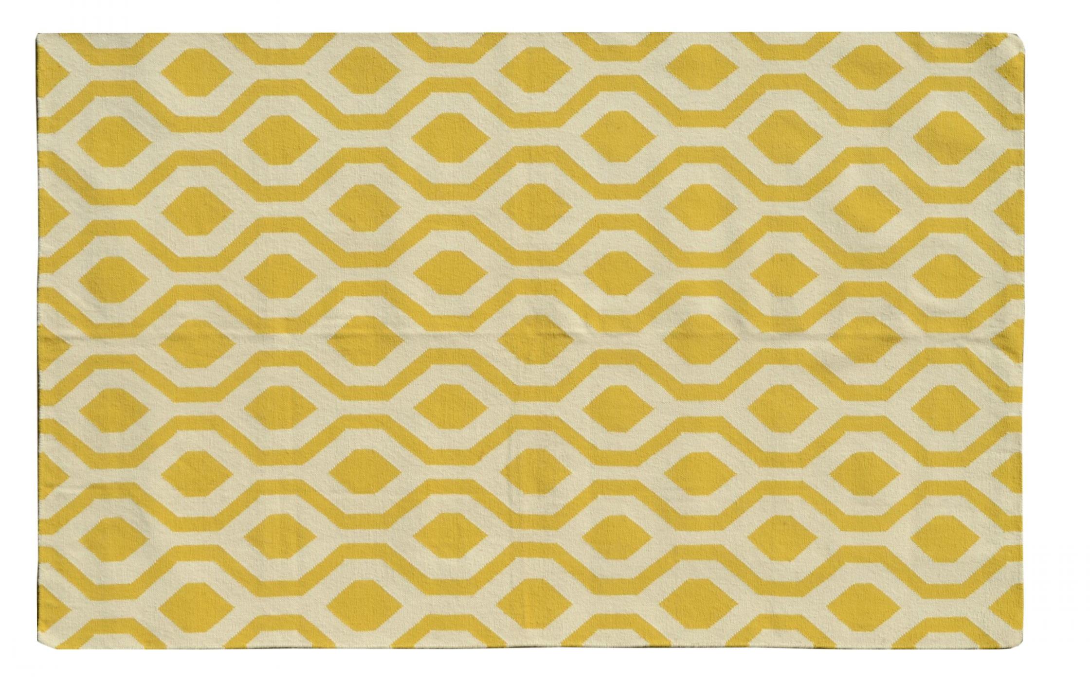 Modern White Yellow Flat Weave Rugs 5 x 8