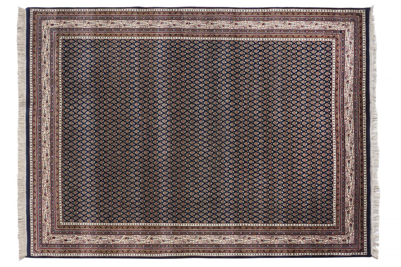 Traditional Dark Blue Cream Hand Knotted Carpets 6 x 9