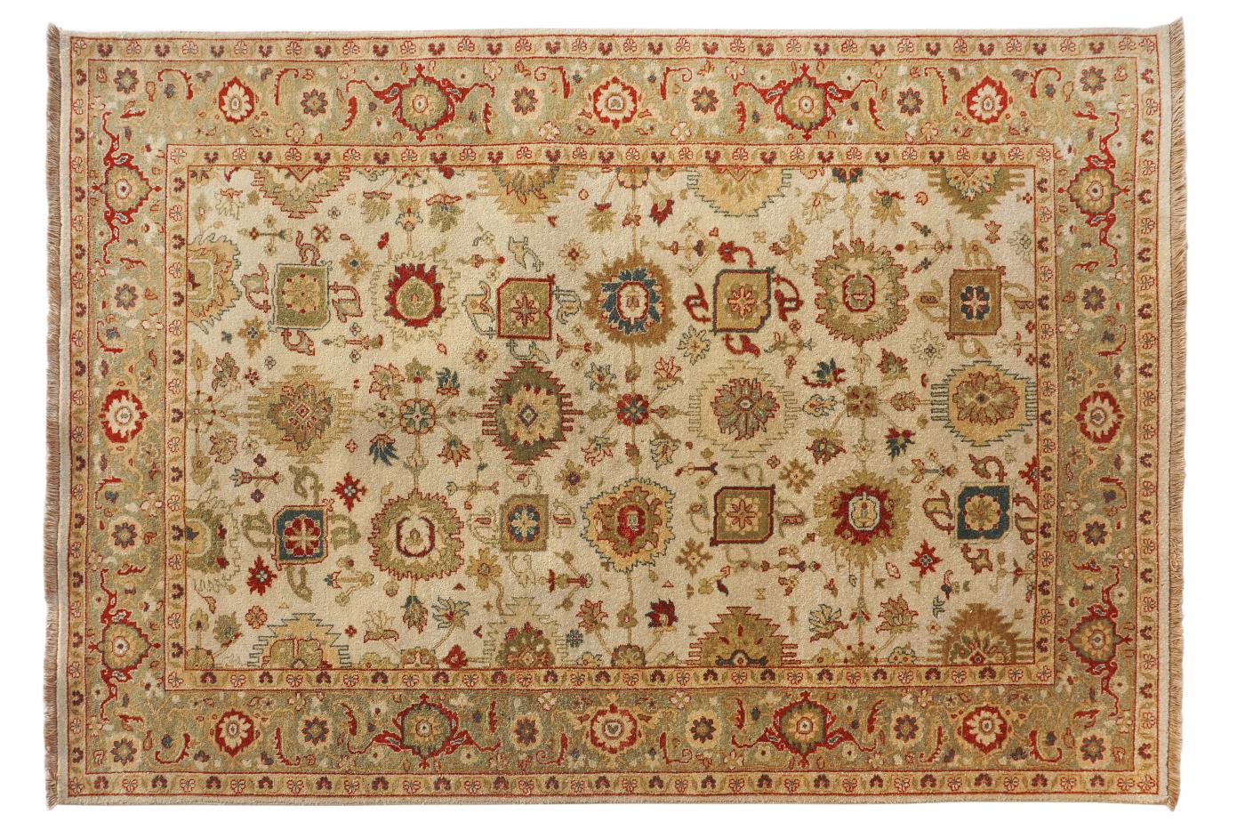 Traditional Beige Green Hand Knotted Carpets 4 x 6