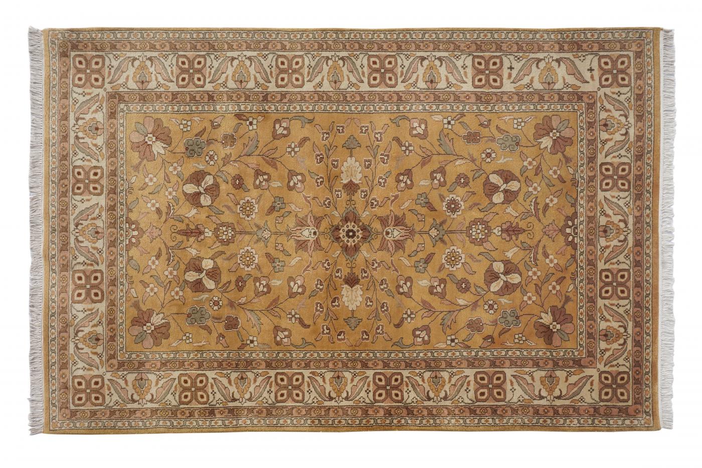 Traditional Gold Cream Hand Knotted Carpets 6 x 9