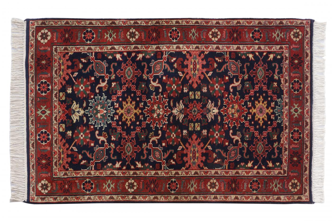 Traditional Blue Red Hand Knotted Carpets 3 x 5