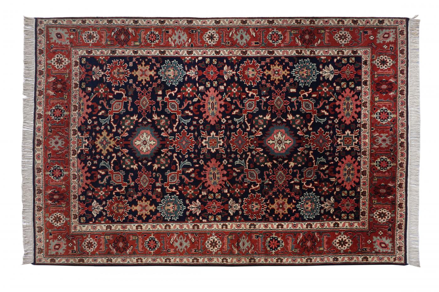 Traditional Blue Red Hand Knotted Carpets 6 x 9