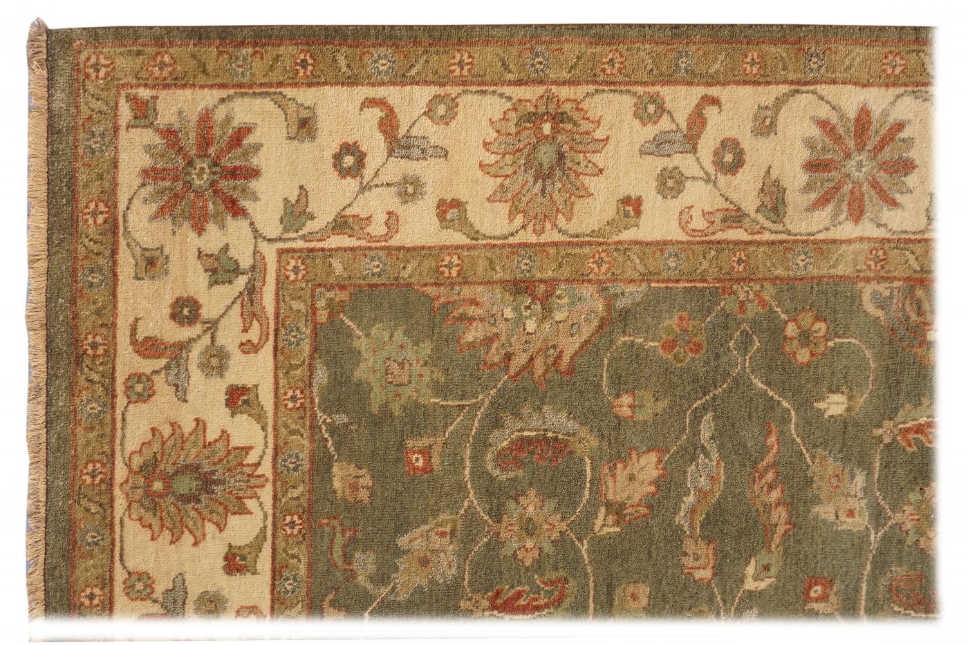 Traditional Light Green Beige Hand Knotted Carpets 6 x 9