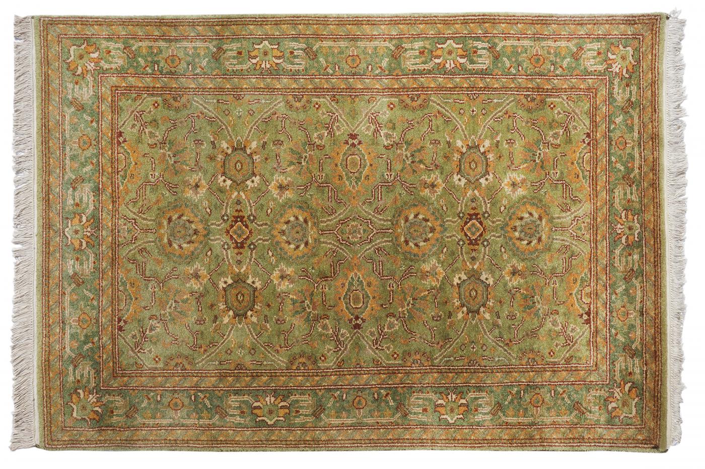 Traditional Light Green Dark Green Hand Knotted Carpets 4 x 6
