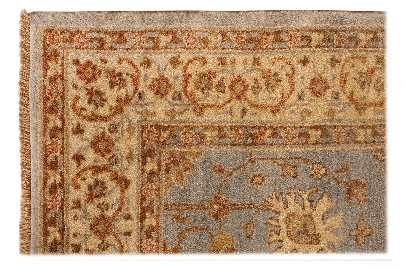 Traditional Light Blue Beige Hand Knotted Carpets 4 x 6