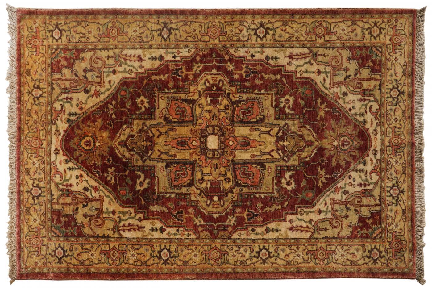 Modern Burgundy Gold Hand Knotted Carpets 4 x 6