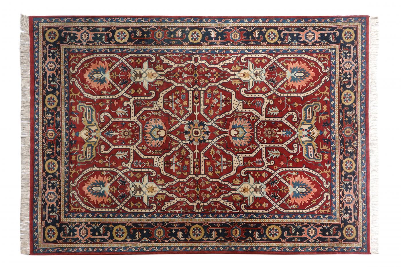 Traditional Red Blue Hand Knotted Carpets 8 x 11