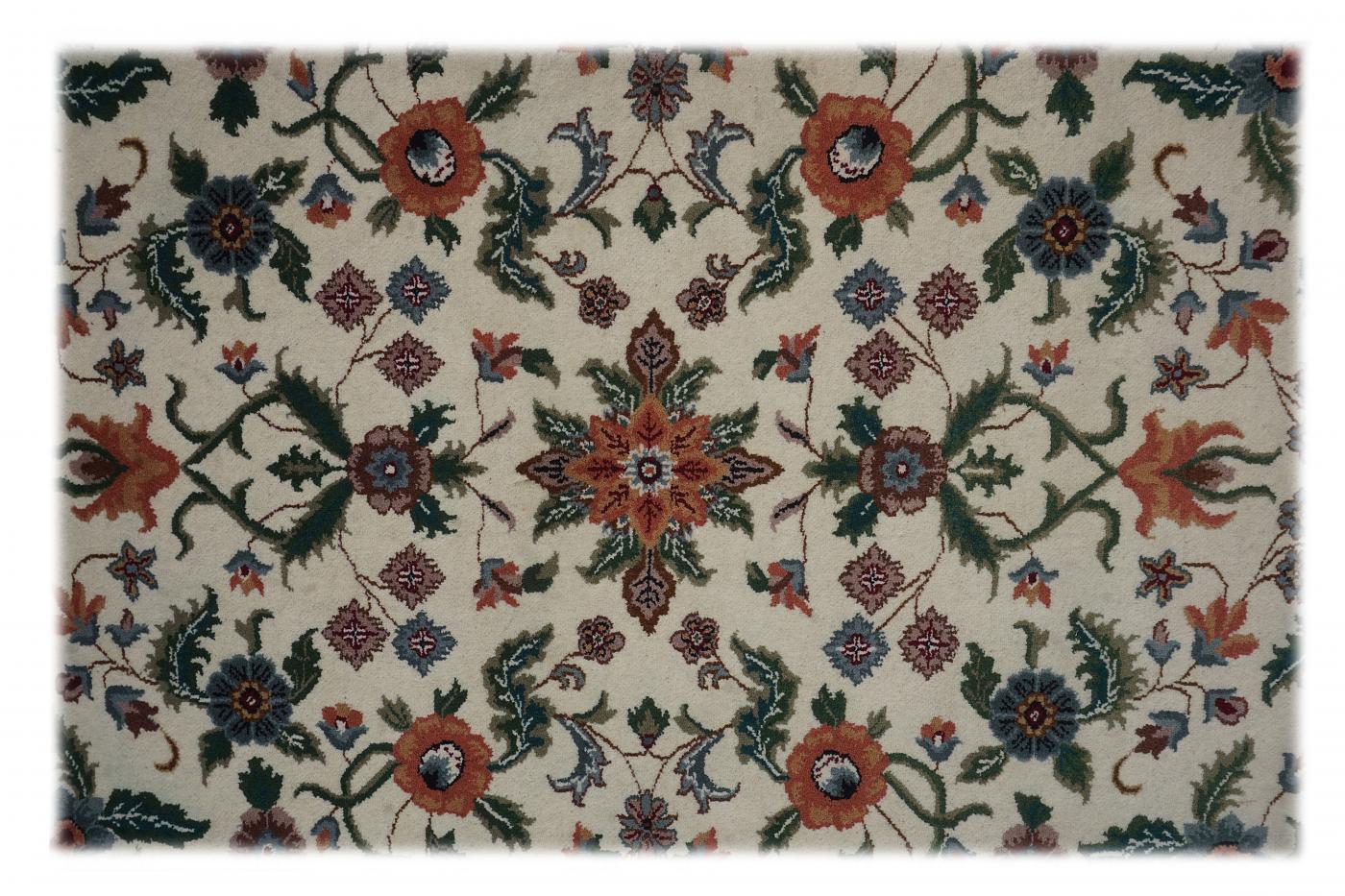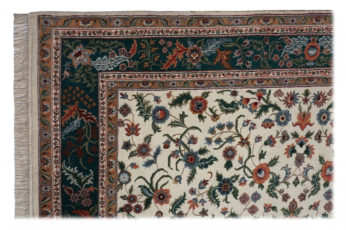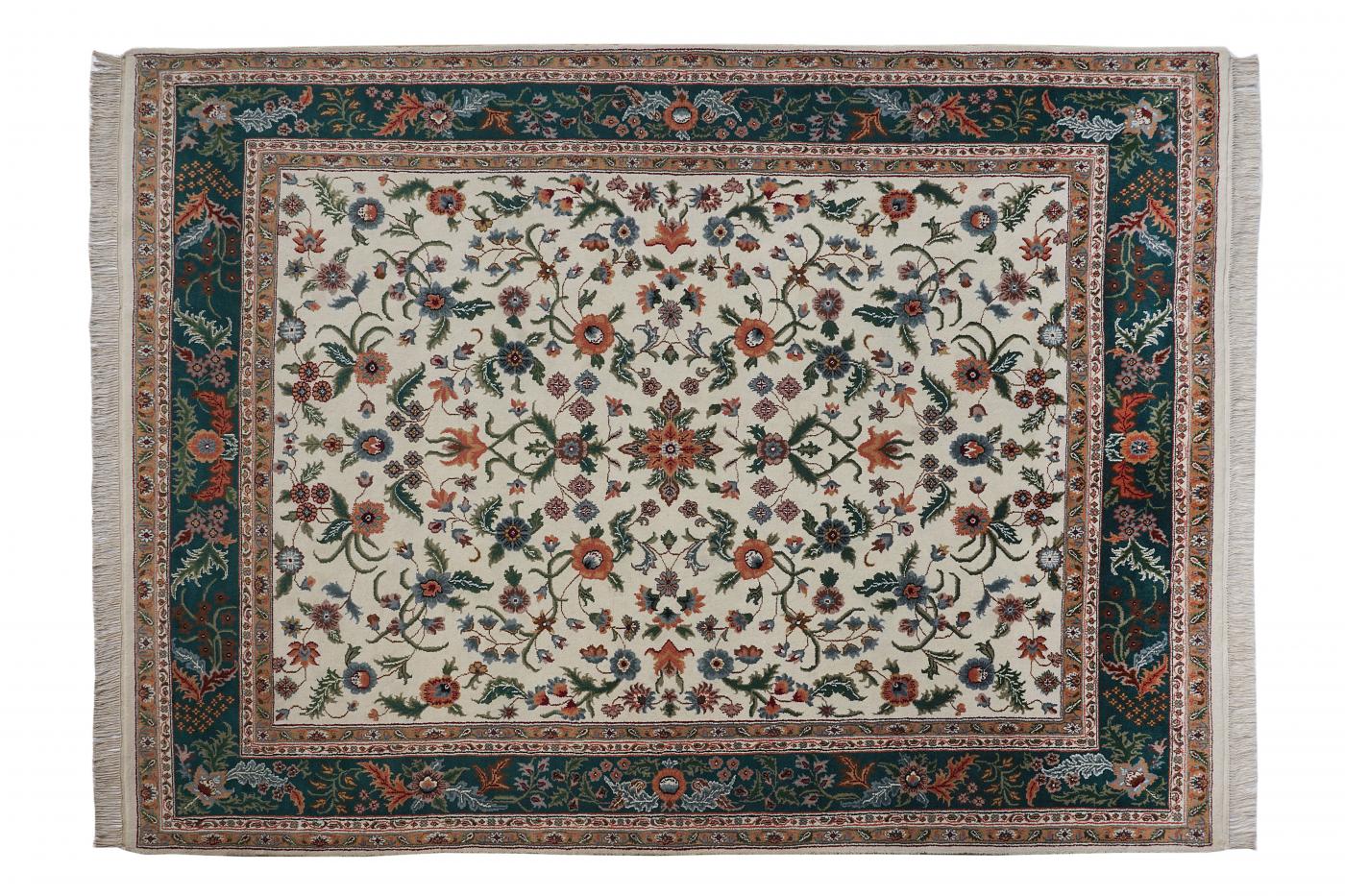 Traditional Ivory Dark Green Hand Knotted Carpets 8 x 10