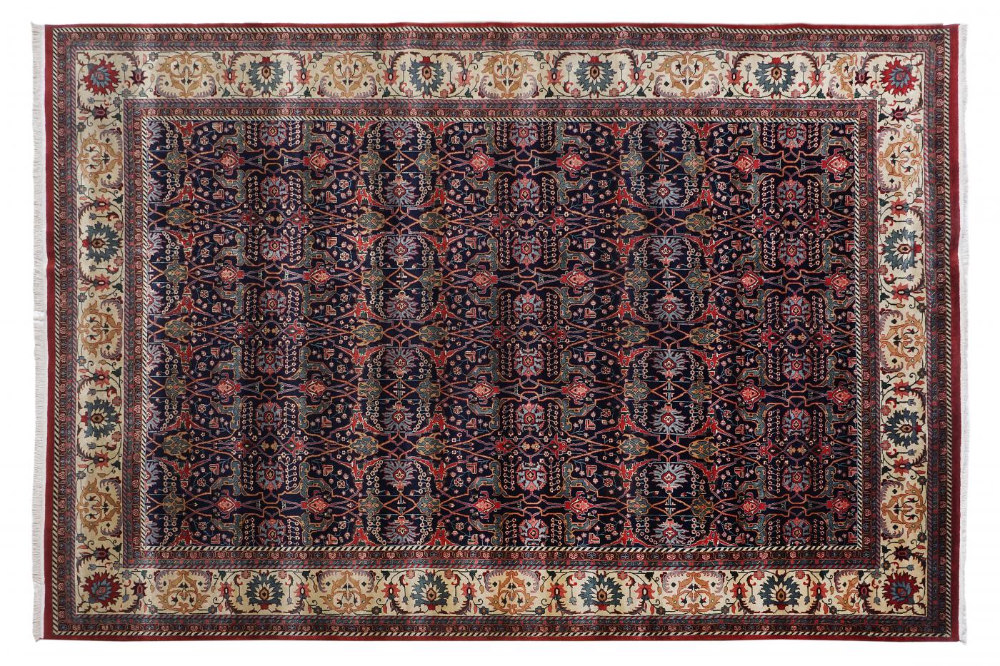 Traditional Dark Blue Ivory Hand Knotted Carpets 12 x 18