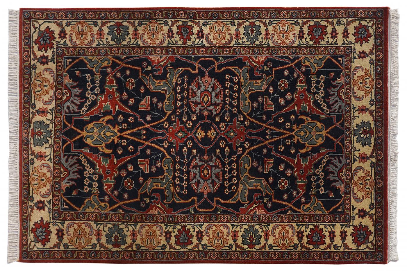 Traditional Dark Blue Ivory Hand Knotted Carpets 4 x 6