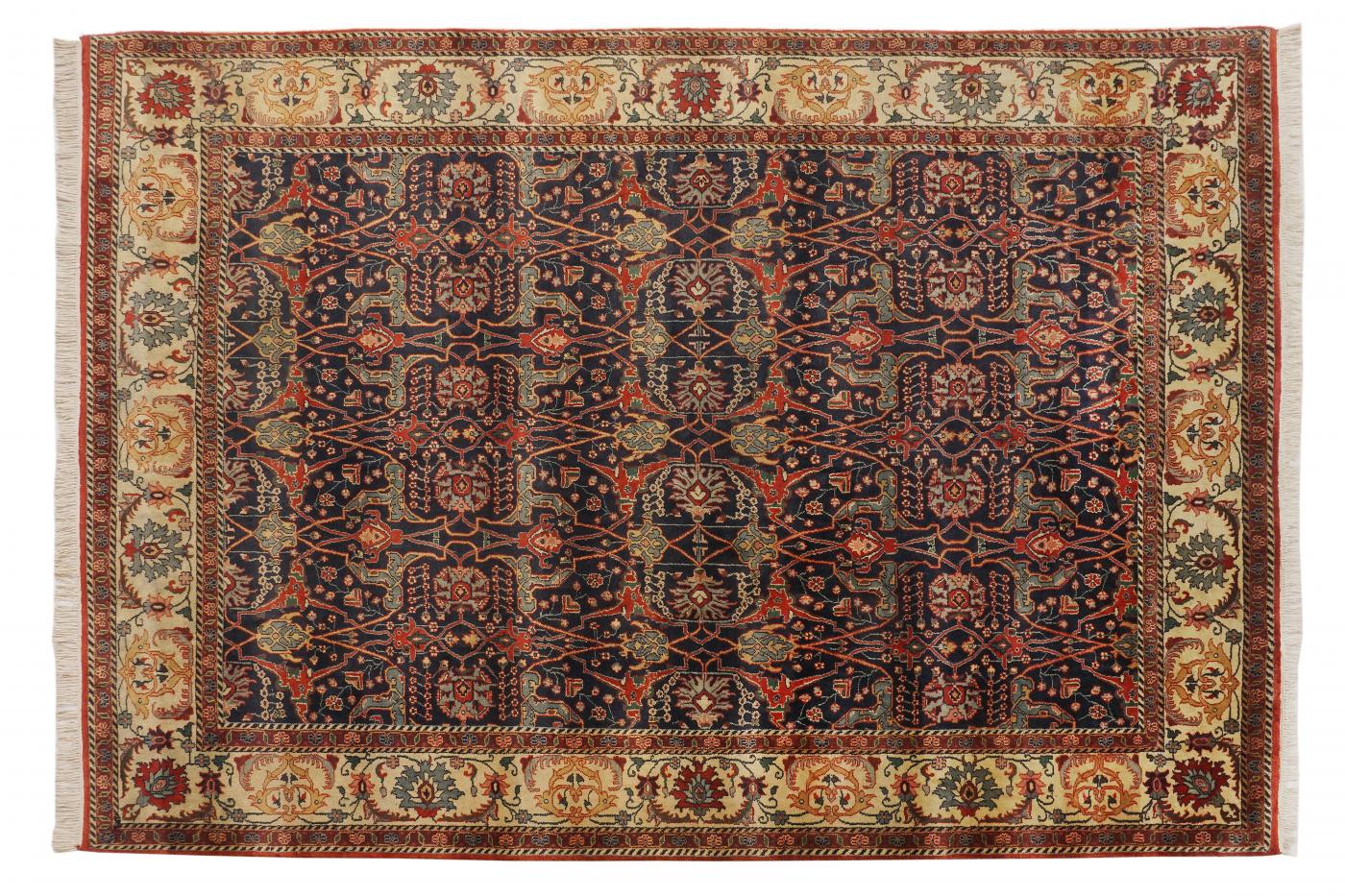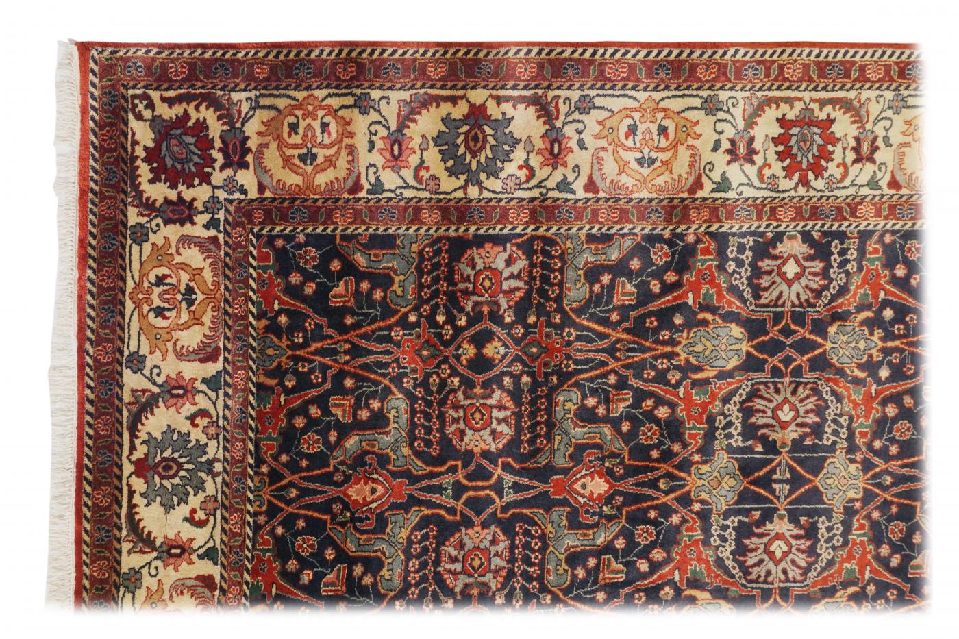 Traditional Dark Blue Ivory Hand Knotted Carpets 9 x 12