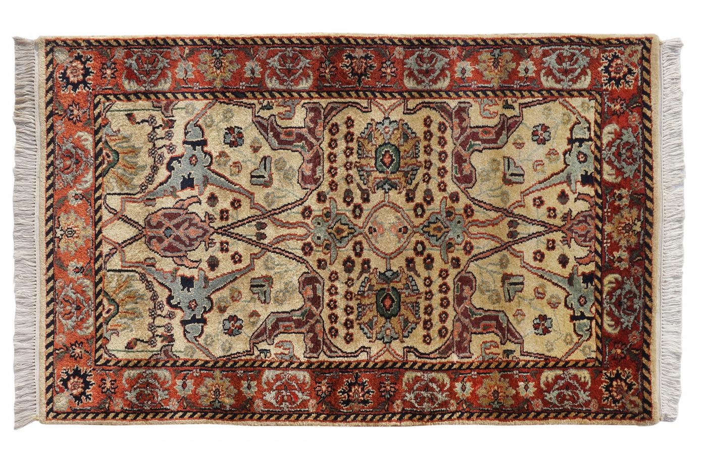 Traditional Ivory Rust Hand Knotted Carpets 3 x 5