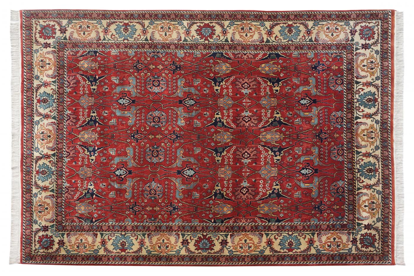 Traditional Rust Ivory Hand Knotted Carpets 8 x 10