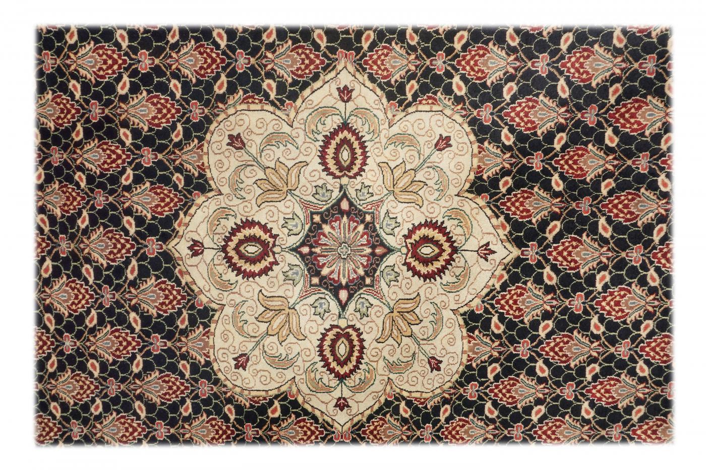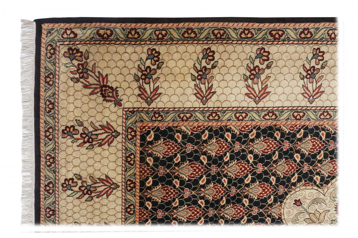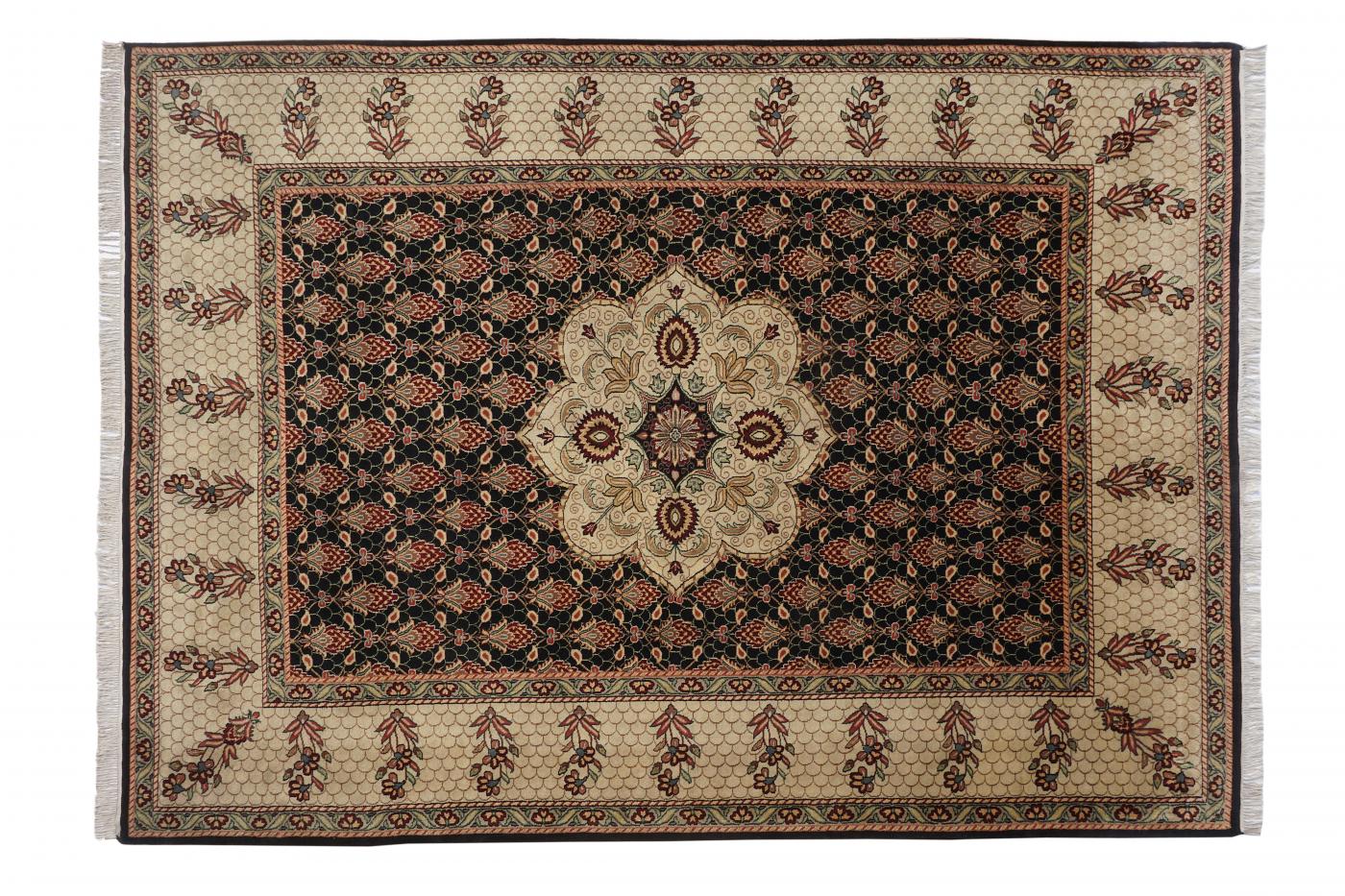Traditional Black Beige Hand Knotted Carpets 9 x 12