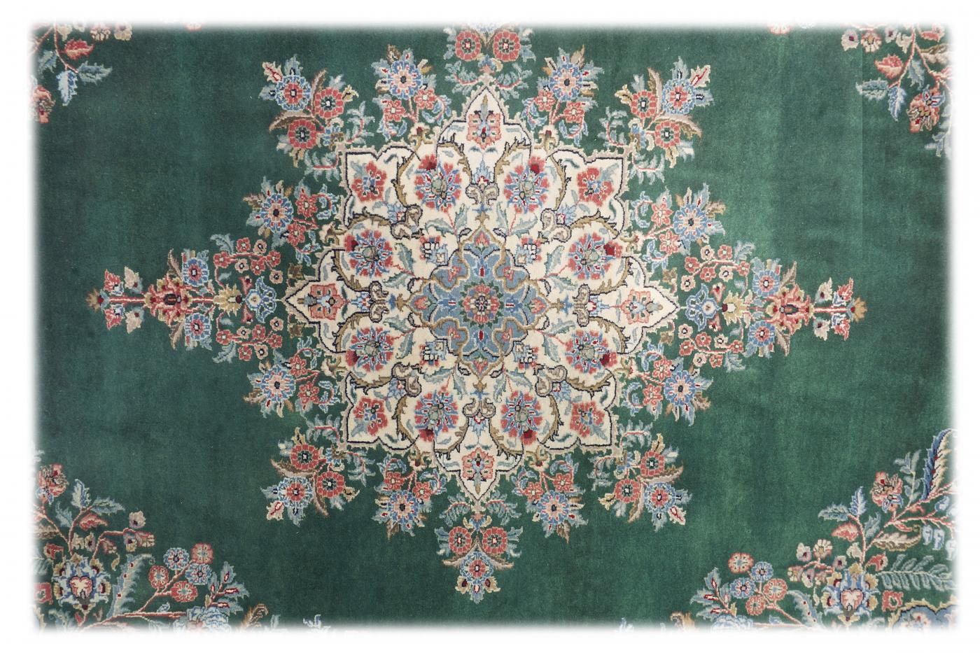 Traditional Green Beige Hand Knotted Carpets 8 x 10