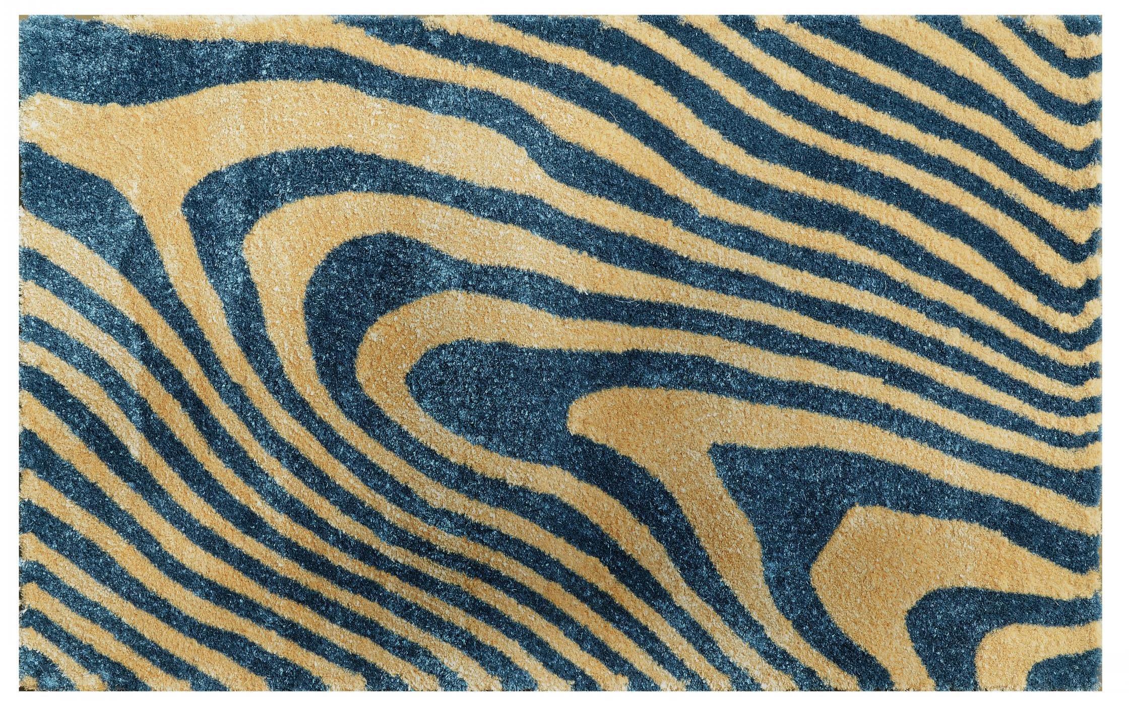 Modern Cream Blue Shaggy Carpets 5 x 8