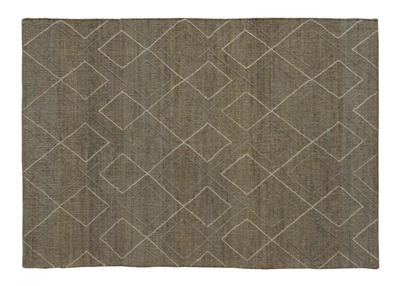 Modern Smoke Grey White Flat Weave Rugs 5.3 x 7.6